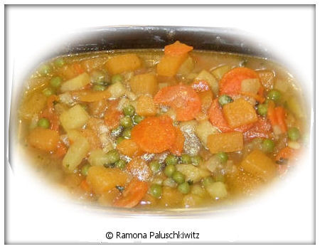 Den Eintopf 15 – 20 Minuten köcheln lassen, bis das Gemüse weich ist.