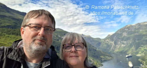 und es nieselte. Aber später dann hatten wir ein riesen Glück und konnten Geiranger und unseren
