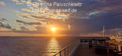 Aber als wir dann in unserer Kabine waren, Koffer ausgepackt und auf Erkundungstour