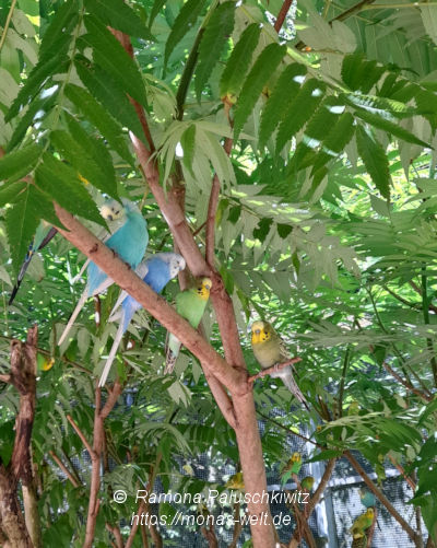 Am Rondell und entlang der südwestlichen Mauer befinden sich Volieren.