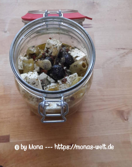 Falls das Olivenöl im Kühlschrank „fest“ wird, das Glas einfach ca. 45 Minuten vor